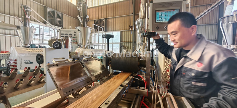 Σήμερα δοκιμάσαμε το μηχάνημα προφίλ WPC για τον πελάτη μας από τη Νότια Αφρική, Δοκιμάσαμε όλα τα παραγγελθέντα καλούπια και κατασκευάσαμε πολύ όμορφα προϊόντα WPC καταστρώματος/πάνελ τοίχου/ πάνελ φράχτη με online 3D ανάγλυφο. Η δοκιμή είναι πολύ επιτυχημένη με απόδοση σταθερής παραγωγής, υψηλής χωρητικότητας και καλής ποιότητας προϊόντων.