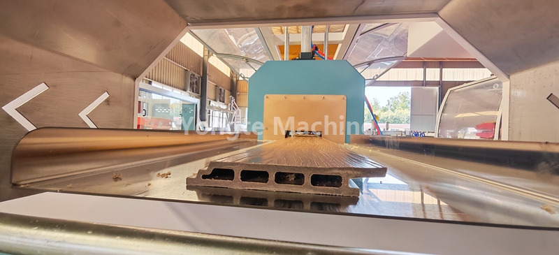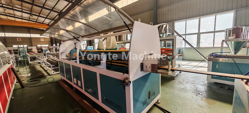 Αυτή η γραμμή εξώθησης προφίλ WPC εξοπλίζει με αυτόματο σύστημα τροφοδοσίας κενού, υψηλό αποτελεσματικό σύστημα εξώθησης κωνικών διπλών βιδών, σύστημα ελέγχου PLC, online μηχανή 3D ανάγλυφης αποτύπωσης, τραπέζι ψύξης και βαθμονόμησης νερού και κενού, απομάκρυνση διπλής κάμπιας, αυτόματη μηχανή κοπής με συλλέκτη σκόνης και στοίβαξη προϊόντων.