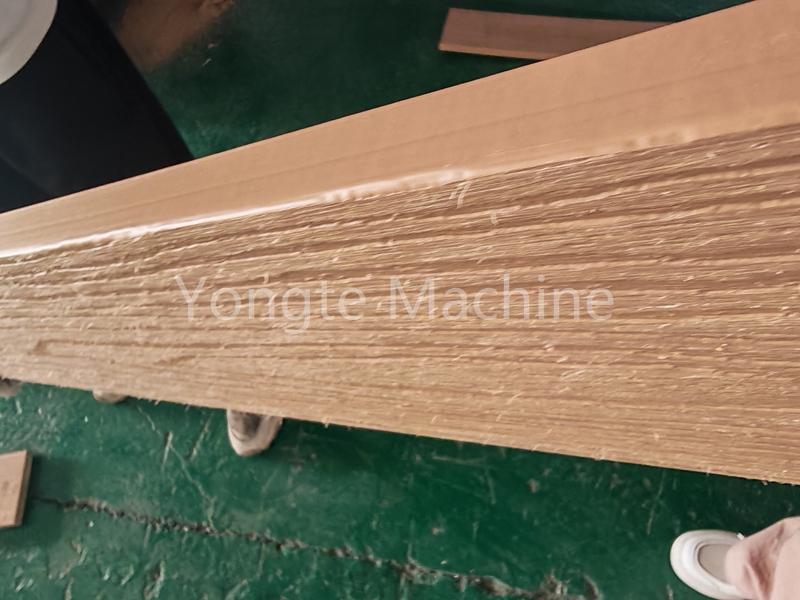 Η εξειδικευμένη μηχανή λείανσης και βουρτσίσματος της Yongte είναι ειδικά σχεδιασμένη για σύνθετα προϊόντα ξύλου-πλαστικού και χρησιμοποιεί λείανση υψηλής ταχύτητας με λειαντικούς ιμάντες, κυλίνδρους DuPont και κυλίνδρους από χαλύβδινο σύρμα. Αυτό όχι μόνο αφαιρεί τις ατέλειες της επιφάνειας, αλλά δημιουργεί επίσης μια τραχιά υφή που μοιάζει με κόκκους ξύλου, εξαλείφοντας την πλαστική εμφάνιση των ξύλινων πλαστικών προϊόντων. Αυτή η επεξεργασία επιφάνειας έχει κερδίσει δημοτικότητα μεταξύ πολλών πελατών. Η Yongte μπορεί να εξοπλίσει διαφορετικά μηχανήματα λείανσης και τραχύνσεως για να ταιριάζουν στα συγκεκριμένα προϊόντα από ξύλο-πλαστικό και στα επιθυμητά επίπεδα τραχύτητας που απαιτούνται από τον πελάτη.