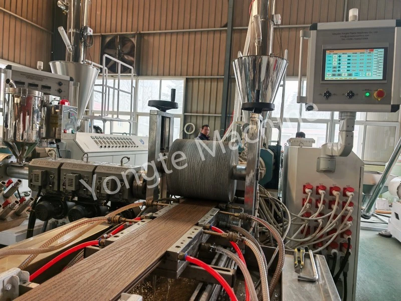 Ως κεντρικό στοιχείο της επίδειξης, το τελευταίο μαςWPCκαταστρώματαγραμμή παραγωγήςενσωματώνει έξυπνη τεχνολογία αιχμής ελέγχου και βελτιστοποιημένες διαδικασίες. Εξοπλισμένο με εξωθητήρα διπλής βίδας υψηλής ροπής, αντιμετωπίζει αποτελεσματικά προκλήσεις όπως η ανομοιόμορφη πλαστικοποίηση και η κακή εξάτμιση που προκαλούνται από τους υψηλούς ρυθμούς πλήρωσης σκόνης ξύλου, διασφαλίζοντας σταθερή ποιότητα προϊόντος.