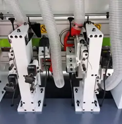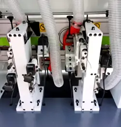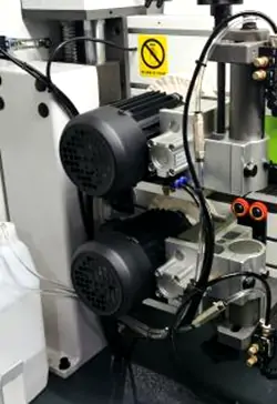 Προάλεσμα: Επιφάνεια ακμής πάνελ χωρίς ατέλειες πριν από τη διαδικασία κόλλησης. Χρησιμοποιεί 2 εργαλεία με αντίθετη περιστροφή και χρονομετρημένη παρέμβαση που, μέσω της λειτουργίας αφαίρεσης, διορθώνει τυχόν ατέλειες του πάνελ που προκαλούνται από τη διαδικασία κοπής του πριονιού και την αποθήκευση του πάνελ. |